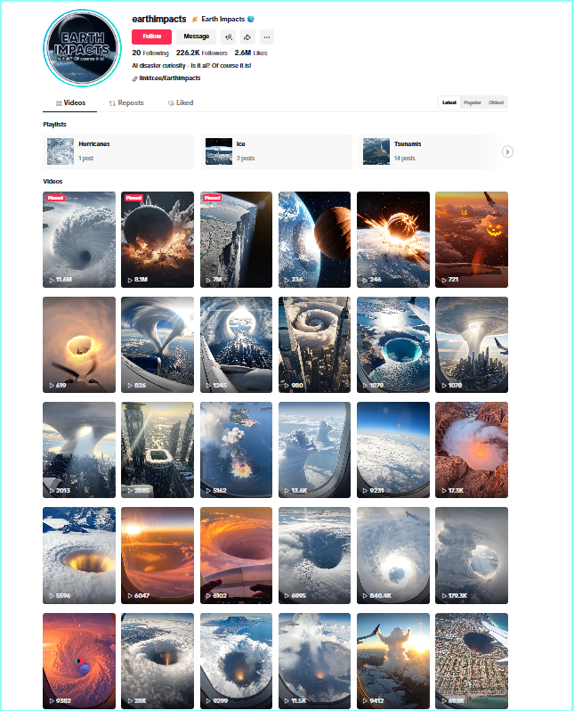 କେବଳ ସେତିକି ନୁହେଁ, ସମାନ TikTok ଏକାଉଣ୍ଟରେ ଅନେକ AI-ଜେନେରେଟେଡ୍ ଭିଡିଓ ମଧ୍ୟ ପୋଷ୍ଟ ହେଇଛି।