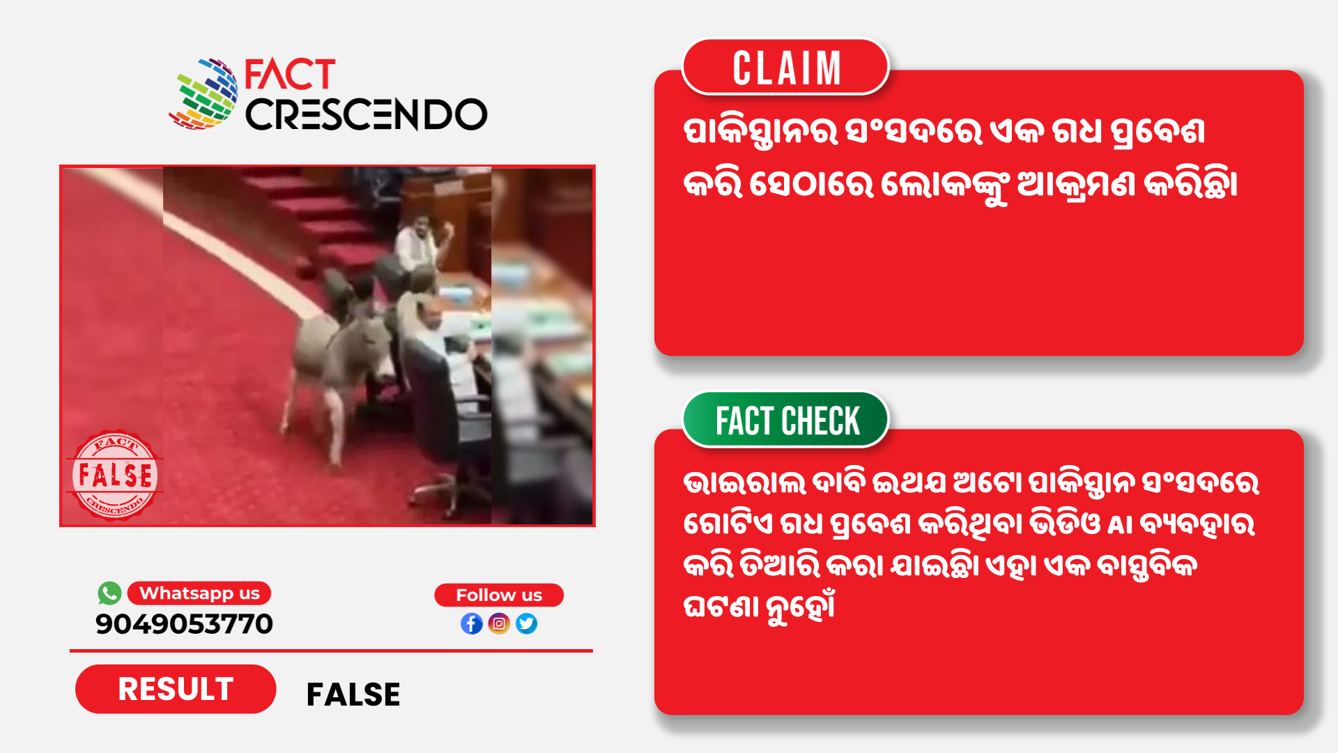 Title:ପାକିସ୍ତାନ ସଂସଦରେ ଗୋଟିଏ ଗଧ ପ୍ରବେଶ କରିଥିବା ଭିଡିଓ AI ବ୍ୟବହାର କରି ତିଆରି କରା ଯାଇଛି।