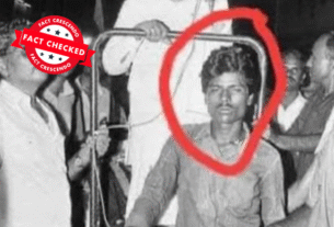 ସ୍ୱର୍ଗତ କରୁଣାନିଧି ରିକ୍ସାରେ ଚିଡ଼ା ହୋଇ ପ୍ରଚାର କରୁଥିବା ବେଳେ ଜଣେ ବ୍ୟକ୍ତି ତାଙ୍କର ରିକ୍ସା ଟାଣୁଆ ଥିବା ଫୋଟୋ ସୋସିଆଲ ମିଡିଆରେ ଭାଇରାଲ ହେଉଥିବା ଦେଖିବାକୁ ମିଳିଛି। ଦାବି କରା ଯାଉଛି ଯେ ରିକ୍ସା ଟାଣୁଥିବା ବ୍ୟକ୍ତି ବର୍ତ୍ତମାନ ତାମିଲନାଡ଼ୁର ଜଣେ ମନ୍ତ୍ରୀ ଇ.ଭି.ଭେଲୁ। କିନ୍ତୁ ଫ୍ୟାକ୍ଟ କ୍ରିଷେଣ୍ଡୋ ଭାଇରାଲ ଦାବିକୁ ମିଥ୍ୟା ବୋଲି ପାଇଲା। ଏହି ଫଟୋଟି ୧୯୯୧ ମସିହାର ଏବଂ ସ୍ୱର୍ଗତ କରୁଣାନିଧିଙ୍କ ରିକ୍ସା ଟାଣିବା ଦେଖାଯାଉଥିବା ବ୍ୟକ୍ତି ଜଣକ ତାମିଲନାଡୁର ମନ୍ତ୍ରୀ […]