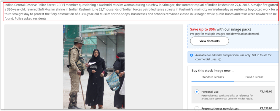 alamy ପେଜରେ ଭାଇରାଲ ଫଟୋ ପାଇଲୁ। ଖବର ଅନୁସାରେ ଭାଇରାଲ ଫଟୋ 27.6.2012ରେ ଉଠାଯାଇଥିଲା। ଇଣ୍ଡିଆନ୍ ସେଣ୍ଟ୍ରାଲ୍ ରିଜର୍ଭ ପୋଲିସ୍ ଫୋର୍ସ (CRPF) ସଦସ୍ୟ 27,6 ରେ ଭାରତୀୟ କାଶ୍ମୀରର ଗ୍ରୀଷ୍ମ କ୍ୟାପିଟାଲ୍ ଶ୍ରୀନଗରରେ କର୍ଫ୍ୟୁ ସମୟରେ ଜଣେ କାଶ୍ମୀରୀ ମୁସଲମାନ ମହିଳାଙ୍କୁ ପଚରାଉଚରା କରୁଛନ୍ତି।. 25 ଜୁନ୍ 2012 ରେ ଭାରତୀୟ କାଶ୍ମୀରରେ ଏକ 350 ବର୍ଷ ପୁରୁଣା, ସମ୍ମାନିତ ସୁଫି ମୁସଲିମ୍ ମନ୍ଦିରରେ ଏକ ବଡ଼ ଅଗ୍ନିକାଣ୍ଡ ଘଟିଥିଲା। ଶ୍ରୀନଗରରେ ଶପ୍, ବ୍ୟବସାୟ ଏବଂ ବିଦ୍ୟାଳୟଗୁଡ଼ିକ ବନ୍ଦ ରହିଥିଲାବେଳେ ସର୍ବସାଧାରଣ ବସ୍ ଏବଂ ଟ୍ୟାକ୍ସିଗୁଡ଼ିକ କେଉଁଠାରେ ନଥିଲା। ପୋଲିସ ବାସିନ୍ଦାଙ୍କୁ ପଚାରିଥିଲା ଅଧିକ ସୂଚନା ପାଇଁ ତଳେ ଲିଙ୍କ ଦେଖନ୍ତୁ।