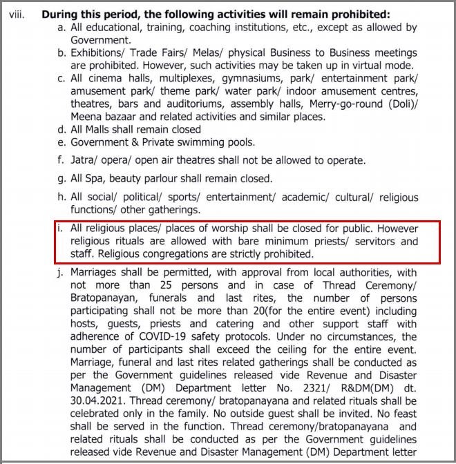 ଏହା ପରେ ଆମେ ଜାଣିବାକୁ ଚାହିଁଲୁ ଯେ କ’ଣ ଗତ ମାସ ରାଜ୍ୟ ସରକାର ଲକଡାଉନ୍ ସମୟରେ ଚର୍ଚ କାର୍ଯ୍ୟକାରିତାକୁ ଅନୁମତି ଦେଇଥିଲା? ସରକାରୀ ୱେବସାଇଟ ଯାଞ୍ଚକରିଲା ପରେ ଆମକୁ ଜୁନ୍ ମାସ ପାଇଁ ନିର୍ଦ୍ଦେଶାବଳି ଜାରି ହେଇଥିବା ନୋଟିସ୍ ମିଳିଲା। ଏହି ନୋଟିସ୍ ରେ ମଧ୍ୟ ସମସ୍ତ ଶାରମିକ ସ୍ଥାନ ଏବଂ ମଣ୍ଡଳୀ ବନ୍ଦ କରିବା ଆଦେଶ ଦିଆ ଯାଇଥିଲା।