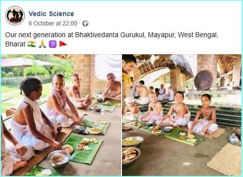 ତାଙ୍କ ଉତ୍ତରରେ ସେ କହିଥିଲେ, “ହଁ, ଏହା ଆମର ଭକ୍ତିବେଦାନ୍ତ ଏକାଡେମୀ ଗୁରୁକୂଳର ଫଟୋ ଯାହା ପଶ୍ଚିମବଙ୍ଗର ନାଦିଆ ଜିଲ୍ଲାର ମାୟାପୁରରେ ଅବସ୍ଥିତ। ମାୟାପୁର ହେଉଛି ଶ୍ରୀ ଚୈତନ୍ୟ ମହାପ୍ରଭୁଙ୍କ ଜନ୍ମସ୍ଥାନ ଏବଂ ଇସ୍କନ (କୃଷ୍ଣ ଚେତନା ପାଇଁ ଆନ୍ତର୍ଜାତୀୟ ସମାଜ)ର ବିଶ୍ୱ ମୁଖ୍ୟାଳୟ। ଇସ୍କନର ପ୍ରତିଷ୍ଠାତା ଆଚାର୍ଯ୍ୟ, ତାଙ୍କ ଦିବ୍ୟ କୃପା ଏ.ସି ଭକ୍ତିବେଦାନ୍ତ ସ୍ୱାମୀ ପ୍ରଭୁପାଦଙ୍କ ନିର୍ଦ୍ଦେଶ ଅନୁଯାୟୀ ଆମେ ଏଠାରେ ଛାତ୍ରମାନଙ୍କୁ ବୈଦିକ ଜ୍ଞାନ ଶିକ୍ଷା ଦେଉଛୁ। ସନାତନ ଧର୍ମ ବିଷୟରେ ଶିଖୁଥିବା ଏଠାରେ ୪୦ ରୁ ଅଧିକ ଦେଶର ଛାତ୍ରଙ୍କ ଏକ ବିବିଧ ମିଶ୍ରଣ ଅଛି। ଗଙ୍ଗା କୂଳରେ ମାୟାପୁର (କୋଲକାତାରୁ ପ୍ରାୟ 120 କିଲୋମିଟର) ରେ ଅବସ୍ଥିତ, ନଗର ଜୀବନର କୋଳାହଳରୁ ବହୁତ ଦୂରରେ, ଗୁରୁକୂଳ ଛାତ୍ରମାନେ ଧୋତି, କାନ୍ତି ମାଳା ପିନ୍ଧନ୍ତି ଏବଂ ନିୟମିତ ଭାବରେ ମୁଣ୍ଡ କ୍ଷୌର କରନ୍ତି।”