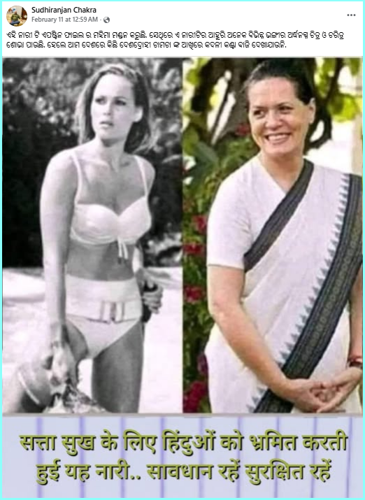 Title:ଜଣେ ହଲିୱୁଡ୍ ଅଭିନେତ୍ରୀଙ୍କ ଫୋଟୋକୁ ସୋନିଆ ଗାନ୍ଧୀଙ୍କ ଫୋଟୋ ଦାବି ସହିତ ସେୟାର କରା ଯାଉଛି।