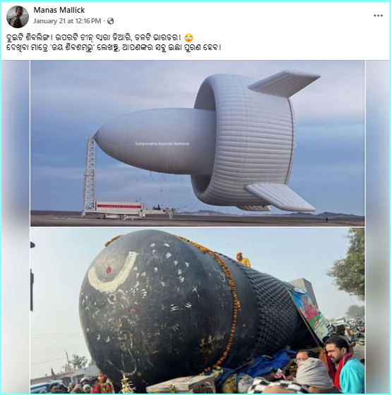 ଏହି ପୃଷ୍ଠଭୂମିରେ ଏକ ବିଶାଳ ଶିବଳିଙ୍ଗ ପରି ପ୍ରତୀତ ହେଉଥିବା ଏକ ଫଟୋ ସୋସିଆଲ ମିଡିଆରେ ଭାରାଳ ହେଉଛି। ଦାବି କରା ଯାଉଛି ଯେ ଏହା ଚୀନ ଦ୍ଵାରା ନିର୍ମିତ ଏକ ଶିବଳିଙ୍ଗ।
