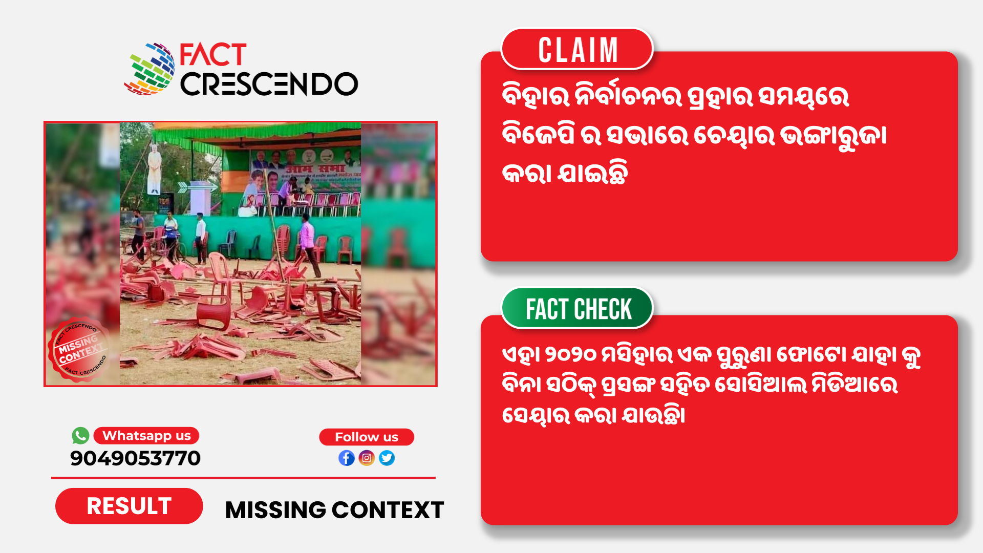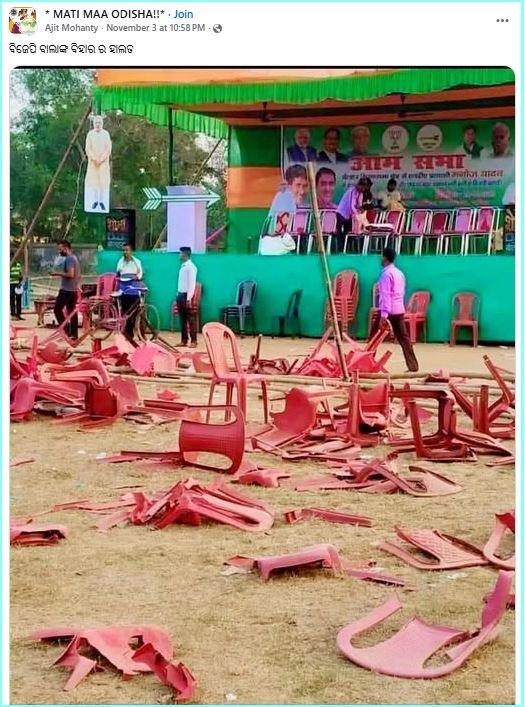 Title:ରାଲିରେ ଭଙ୍ଗା ଚେୟାରର ଫୋଟୋ ୨୦୨୫ ବିହାର ନିର୍ବାଚନର ନୁହେଁ।