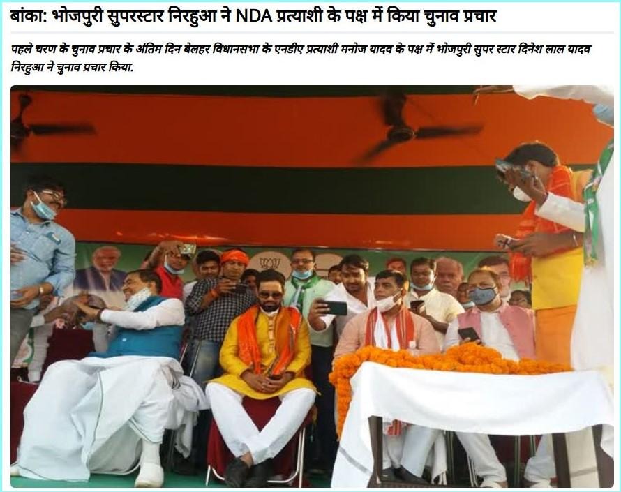 ଗୁଗୁଲରେ ବିଭିନ୍ନ ମୁଖ୍ୟଶବ୍ଦ ବ୍ୟବହାର କରି ସର୍ଚ୍ଚ କରିବା ପରେ ଆମକୁ ଇଟିଭି ଭାରତ ୱେବସାଇଟରେ ଏକ ରିପୋର୍ଟ ମିଳିଲା। ଏହା ସହିତ ସୂଚନା ଦିଆଯାଇଥିଲା ଯେ, “ବେଲହାର ବ୍ଲକ ମୁଖ୍ୟାଳୟ ସ୍ଥିତ ଜାମା ମଇଦାନରେ JDU ପ୍ରାର୍ଥୀ ମନୋଜ ଯାଦବଙ୍କ ସମର୍ଥନରେ ବିଜେପି ନେତା ଦିନେଶ ଲାଲ ଯାଦବ ନିରହୁଆ ଏବଂ ରାମ କୃପାଳ ଯାଦବ ଏକ ନିର୍ବାଚନୀ ରାଲିକୁ ସମ୍ବୋଧିତ କରିଥିଲେ। ରାଲିରେ ଏକ ବିଶାଳ ଜନସମାବେଶ ହୋଇଥିଲା। ସମାବେଶକୁ ସମ୍ବୋଧିତ କରି ନିରହୁଆ କହିଥିଲେ ଯେ ବିହାରର ସର୍ବାଙ୍ଗୀନ ବିକାଶ ପାଇଁ NDA ମେଣ୍ଟ ସରକାର ଏକମାତ୍ର ବିକଳ୍ପ।” ତଥାପି, ରିପୋର୍ଟରେ ଆମେ ଚେୟାର ଭାଙ୍ଗିବା କିମ୍ବା କୌଣସି ବିଭ୍ରାଟ ସୃଷ୍ଟି କରିବାର କୌଣସି ଉଲ୍ଲେଖ ପାଇଲୁ ନାହିଁ।