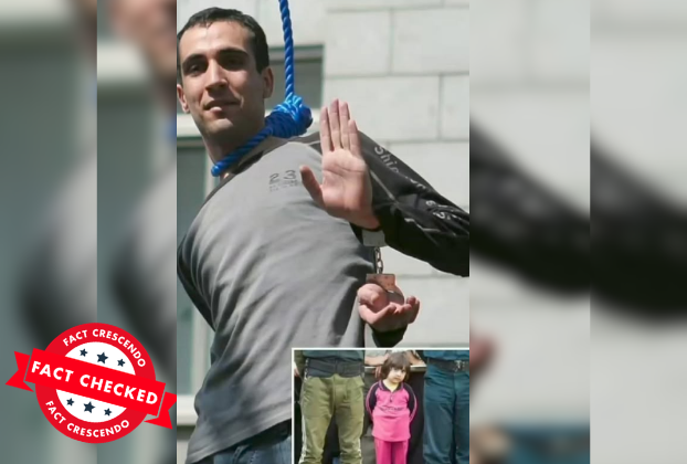ନିକଟରେ ସୋସିଆଲ ମିଡିଆରେ ଏକ ଫଟୋ ଭାଇରାଲ ହୋଇଛି ଯେଉଁଥିରେ ଦାବି କରାଯାଇଛି ଯେ ଜଣେ ବ୍ୟକ୍ତି ସୋସିଆଲ ମିଡିଆରେ ଇରାନ ସରକାରଙ୍କ ବିରୋଧରେ ପୋଷ୍ଟ କରିଥିବାରୁ ନିଜ ଝିଅ ସାମନାରେ ତାଙ୍କୁ ଫାଶୀ ଦିଆ ଯାଇଛି। ଏହି ଫଟୋଟି ଦୁଇଟି ଫଟୋର ଏକ କୋଲାଜ୍, ଗୋଟିଏ ଫଟୋରେ ଜଣେ ବ୍ୟକ୍ତି ବେକରେ ଫାଶୀ ଲଗାଇ ହସୁଥିବା ଦେଖାଯାଉଛି ଏବଂ ଅନ୍ୟ ଫଟୋରେ ଗୋଟିଏ ଛୋଟ ଶିଶୁ ଠିଆ ହୋଇଥିବା ଦେଖାଯାଉଛି।