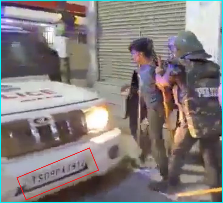 ଉପରୋକ୍ତ ଭିଡିଓକୁ ଗଭୀରତା ସହିତ ଦେଖିବା ପରେ ଆମେ ଜାଣିବାକୁ ପାଇଲୁ ଯେ ଗୋଟିଏ ପୋଲିସ କାରର ପଞ୍ଜୀକରଣ ନମ୍ବର ‘ଟିଏସ (TS)’ ରୁ ଆରମ୍ଭ ହୋଇଛି। TS ହେଉଛି ତେଲଙ୍ଗାନା ଷ୍ଟେଟ୍ ର ପଞ୍ଜୀକରଣ ନମ୍ବର।
