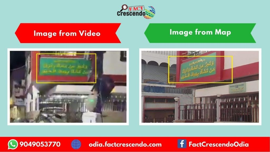 ଆମେ ଅନ୍ୟ ଏକ ବିଲଡିଙ୍ଗରେ ଉର୍ଦୁ ଭାଷାରେ କିଛି ଲେଖା ହୋଇଥିବା ପାଇଲୁ। ସମାନ ବିଲଡିଙ୍ଗ ଆମେ ହାଇଦ୍ରାବାଦର ଗୁଗୁଲ ମ୍ୟାପ୍ ରେ ମଧ୍ୟ ଦେଖିବାକୁ ପାଇଲୁ। ନିମ୍ନରେ ଆପଣ ମାନେ ଭାଇରାଲ ଭିଡିଓରେ ଥିବା ବିଲଡିଙ୍ଗ ଏବଂ ମ୍ୟାପ୍ ରେ ମିଳିଥିବା ବିଲଡିଙ୍ଗ ମଧ୍ୟରେ ସମାନତା ଦେଖି ପାରିବେ।