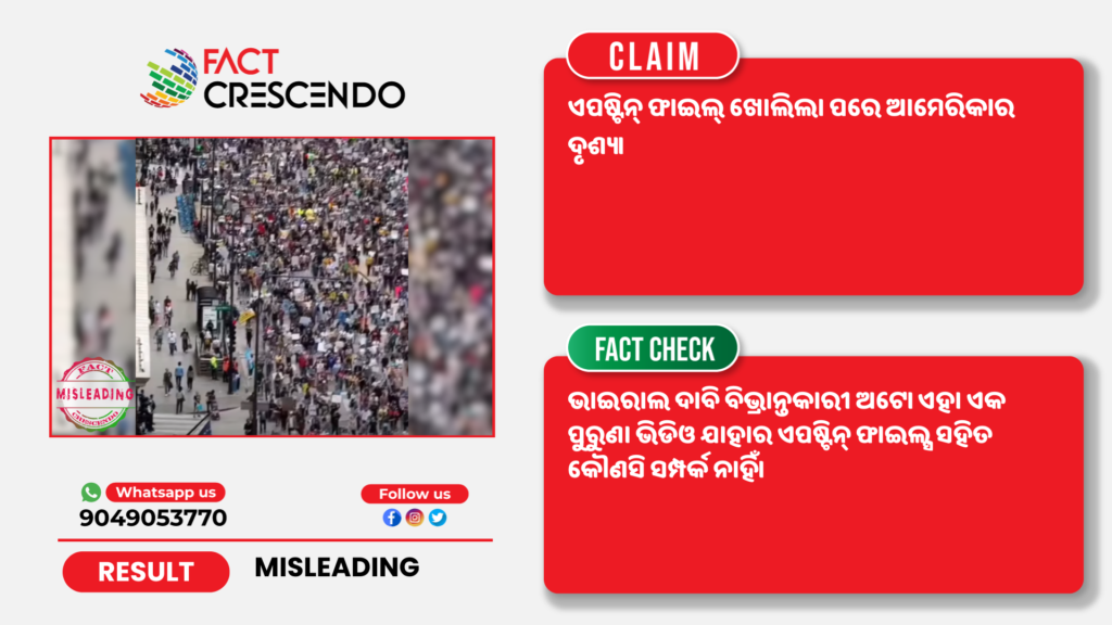 Title:ଆମେରିକାରେ ପ୍ରତିବାଦର ଏକ ପୁରୁଣା ଭିଡିଓକୁ ଏପଷ୍ଟିନ୍ ଫାଇଲ୍ ପ୍ରକାଶ ପାଇବା ପର ଘଟଣା ଦାବି ସହିତ ସେୟାର କରା ଯାଉଛି।