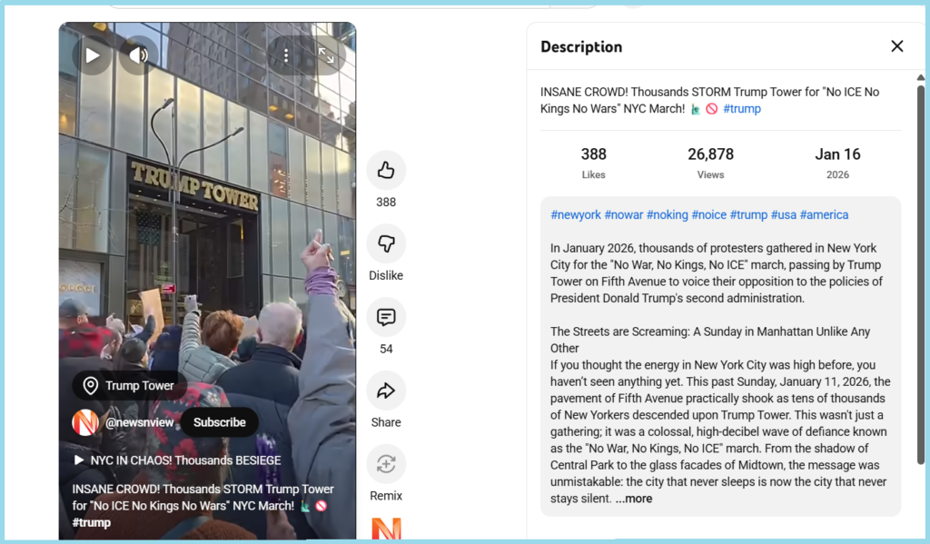 ଭାଇରାଲ ଭିଡିଓରେ ଦୁଇଟି କ୍ଲିପ୍ ଅଛି। ପ୍ରଥମ କ୍ଲିପ୍ରେ ରାସ୍ତାରେ ଏକ ବିଶାଳ ଭିଡ଼ର ଦୃଶ୍ୟ ଦେଖାଯାଉଛି ଏବଂ ଦ୍ୱିତୀୟ କ୍ଲିପ୍ରେ ଲୋକମାନେ ଟ୍ରମ୍ପ୍ ଟାୱାର ସମ୍ମୁଖରେ ପ୍ରଦର୍ଶନ କରି “ଲଜ୍ଜା ଲଜ୍ଜା” ସ୍ଲୋଗାନ ଦେଉଛନ୍ତି।