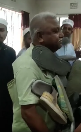 ସୋସିଆଲ ମିଡିଆ ରେ ଜୋତାରେ ତିଆରି ମାଳା ପିନ୍ଧିଥିବା ଜଣେ ବ୍ୟକ୍ତିର ଏକ ଭିଡିଓ ଭାଇରାଲ ହେଉଛି। ଦାବି କରା ଯାଉଛି ଯେ ସେ ବାଂଲାଦେଶରେ ଜଣେ ହିନ୍ଦୁ ଶିକ୍ଷକ ହୋଇଥିବାରୁ ତାଙ୍କୁ ଅପମାନିତ କରାଯାଉଛି। ଭିଡିଓ ସେୟାର କରି ଜଣେ ୟୁଜର ଲେଖିଛନ୍ତି, “ବାଂଲାଦେଶ ରେ 40 ବର୍ଷୀୟ ହିନ୍ଦୁ ଶିକ୍ଷକ ଙ୍କୁ ଜୋତା ମାଳ ପିନ୍ଧାଇ ସ୍କୁଲ ରୁ ବିଦା କରିଦିଆ ଗଲା। ଏଇଭଳି ଅବସ୍ଥା ହିନ୍ଦୁ ଙ୍କର ସେଠାରେ”