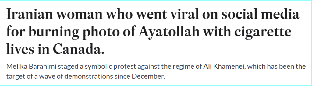 ଅଧିକ ସର୍ଚ୍ଚ କରିବା ପରେ, ଆମେ ୧୩ ଜାନୁଆରୀ ୨୦୨୬ ରେ Estadao.com ନାମକ ଏକ ୱେବସାଇଟରେ ପର୍ତ୍ତୁଗୀଜ୍ ଭାଷାରେ ପ୍ରକାଶିତ ଏକ ରିପୋର୍ଟ ପାଇଲୁ। ପର୍ତ୍ତୁଗୀଜ୍ ଖବରକାଗଜ ଲୁସା ରିପୋର୍ଟ କରିଛି ଯେ ଭାଇରାଲ୍ ଭିଡିଓଟି ଇରାନର ନୁହେଁ, ବରଂ କାନାଡାର। ୯ ଜାନୁଆରୀ ୨୦୨୬ ରେ ଲୁସାର ୱେବସାଇଟରେ ଏକ ରିପୋର୍ଟ ପ୍ରକାଶିତ ହୋଇଥିଲା ଯେ “ଇରାନର ସର୍ବୋଚ୍ଚ ନେତା ଅଲି ଖାମେନିଙ୍କ ଜଳୁଥିବା ଫଟୋରୁ ସିଗାରେଟ୍ ଜାଳୁଥିବା ଜଣେ ମହିଳାର ଭିଡିଓ ଇରାନରେ ନୁହେଁ, ବରଂ କାନାଡାର ଏକ ସହରରେ ସୁଟ୍ କରାଯାଇଥିଲା।” ରିପୋର୍ଟ ଅନୁଯାୟୀ, ମହିଳାଙ୍କ ନାମ ମାଲିକା ବାରାହିମି, ଯିଏ ଇରାନୀ। ତଥାପି, ସେ କାନାଡାରେ ଶରଣାର୍ଥୀ ଭାବରେ ରୁହନ୍ତି, ଏବଂ ସେ ସେଠାରେ ଭିଡିଓ ସୁଟ୍ କରିଥିଲେ।