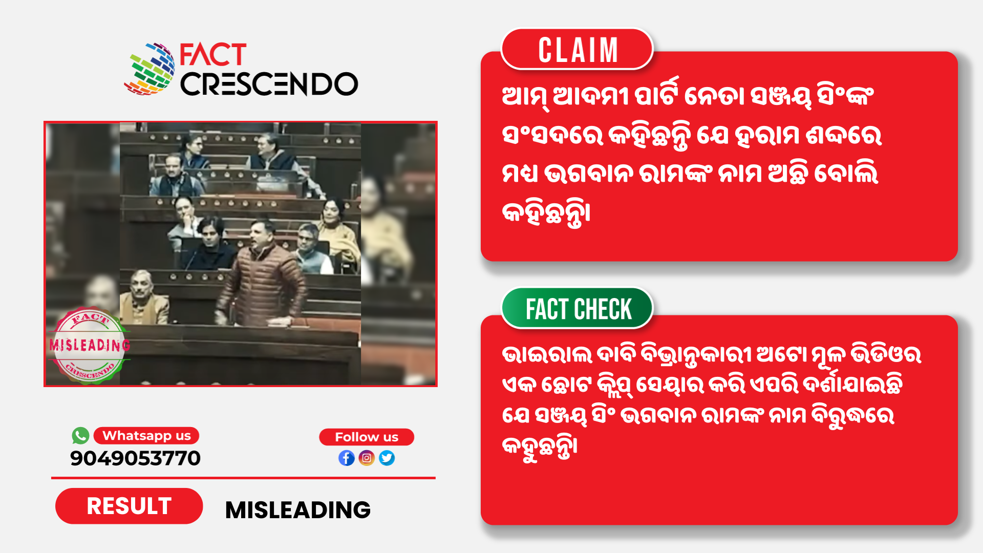 Title:ଆମ୍ ଆଦମୀ ପାର୍ଟି ନେତା ସଞ୍ଜୟ ସିଂଙ୍କର ଅସମ୍ପୂର୍ଣ୍ଣ ଭିଡିଓ ବିଭ୍ରାନ୍ତକାରୀ ଦାବି ସହିତ ଭାଇରାଲ ହେଉଛି।